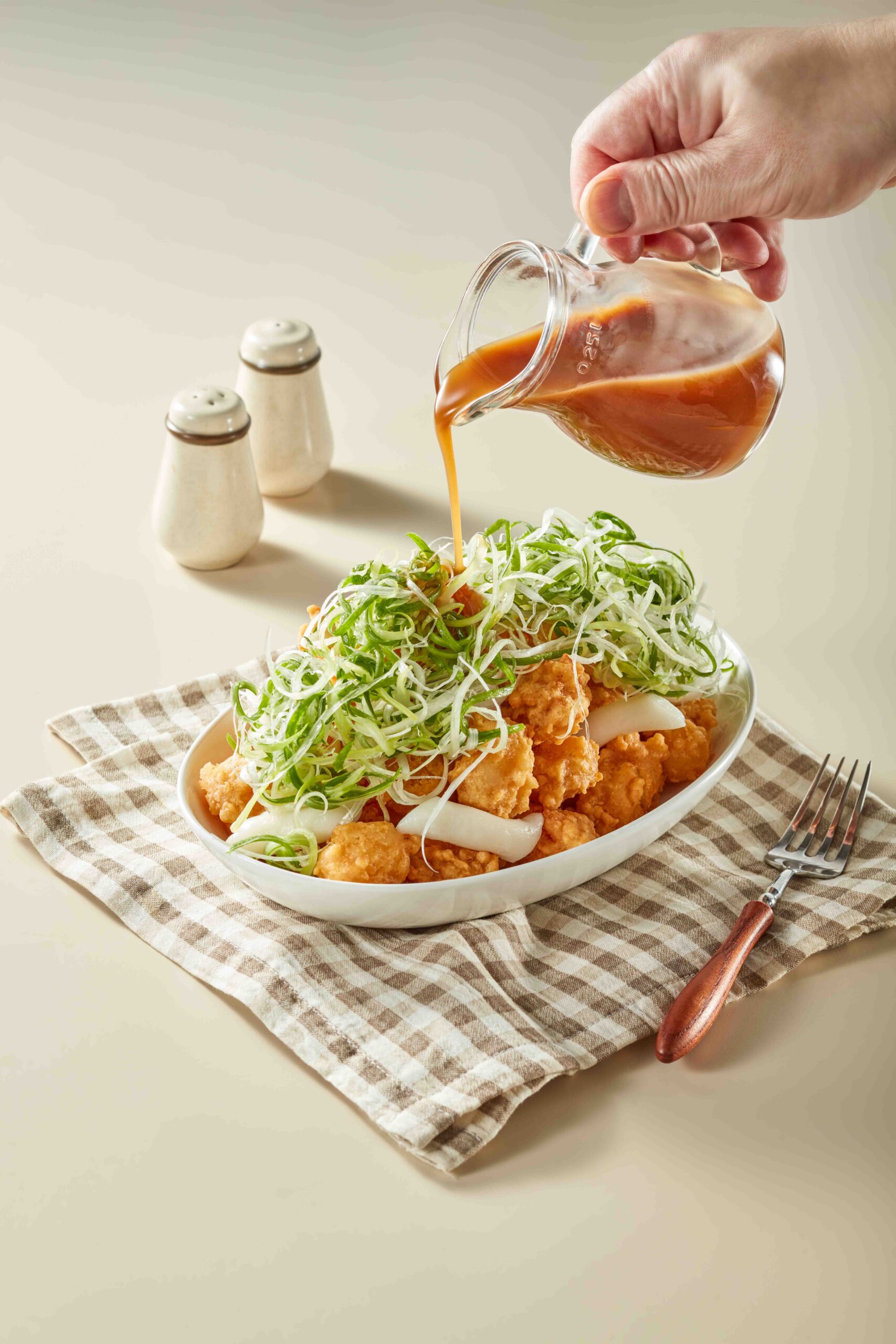 바삭한 후라이드 위에 아삭아삭한 파채를 올리고, 특제 파채 소스를